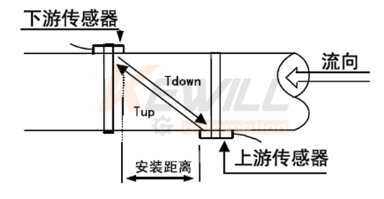 當超聲波束在液體中傳播時,液體的流動將使傳播時間產生微小變化,其傳播時間的變化正比于液體的流速,其關系符合下面的表達式