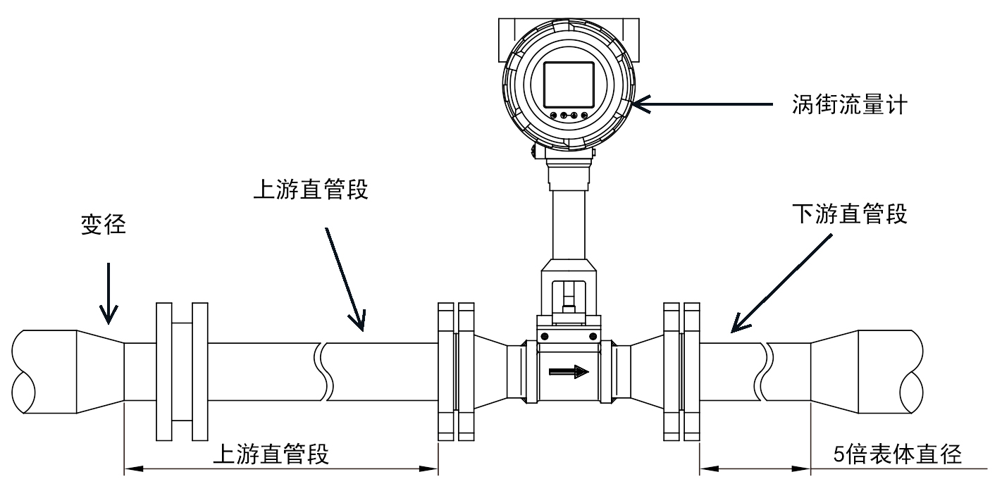 ※ 上圖為流量計前后安裝直管段的示意圖;