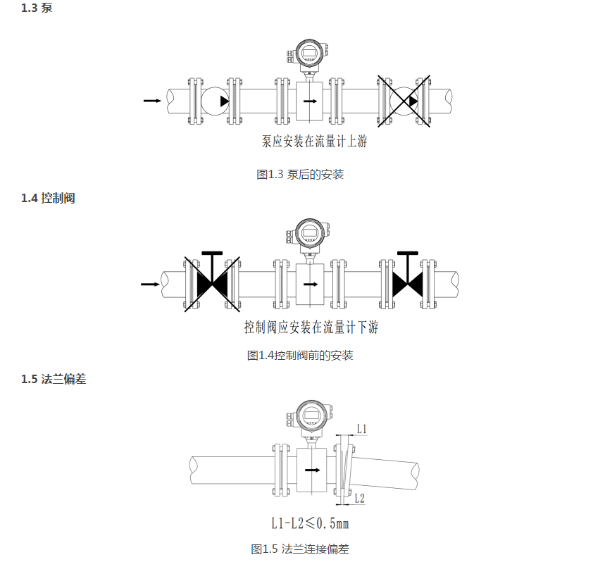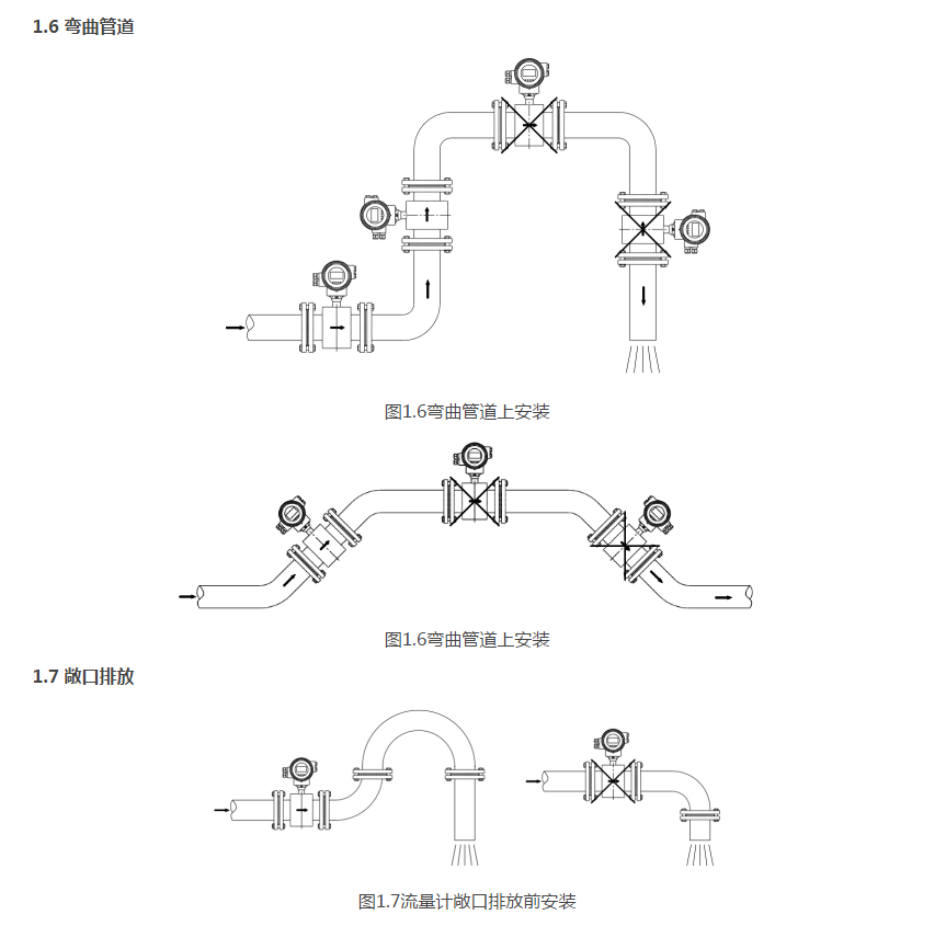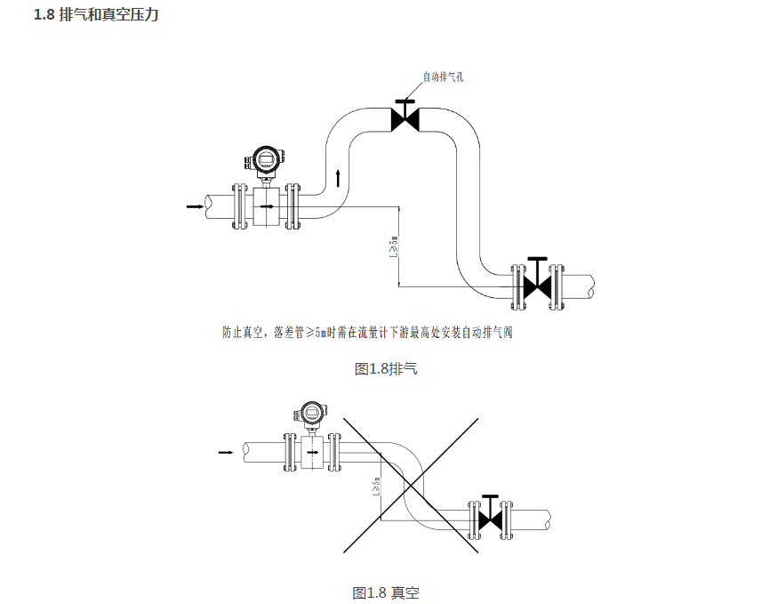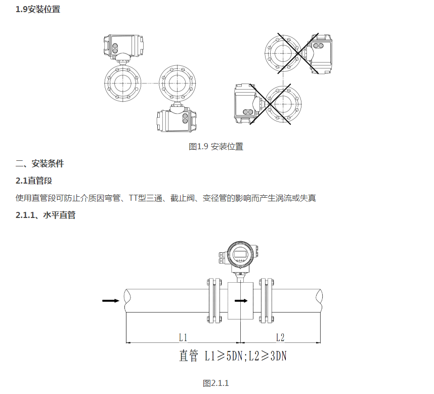 A、上下游工藝管道內(nèi)徑和流量計(jì)內(nèi)徑應(yīng)滿足以下要求:0.98DN≤D≤1.05DN(DN:流量計(jì)內(nèi)徑;D:工藝管道內(nèi)徑)