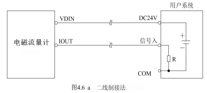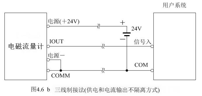 4.6.3 電磁流量計轉(zhuǎn)換器電流輸出接線: