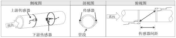 外夾式超聲波流量計(jì)的安裝距離是指兩個(gè)傳感器相對(duì)兩端的距離。