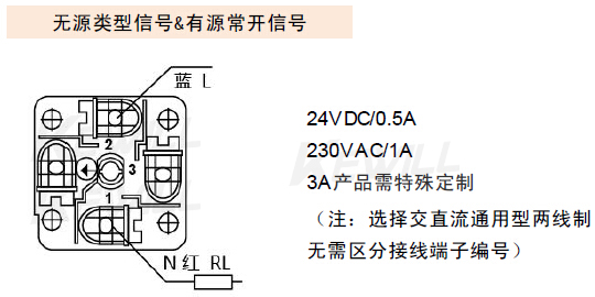 | 24V±20%DC,0.5A,26W;無源觸點信號 ;常閉信號單點設定(無LED指示燈) | ||||||||