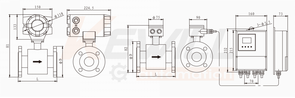 廢水流量計:測量流量時,導(dǎo)電性液體以速度V流過垂直于流量方向的磁場,導(dǎo)電性液體的流動感應(yīng)出一個與平均流速成正比的電壓,其感應(yīng)電壓信號通過二個或二個以上與液體直接接觸的感應(yīng)