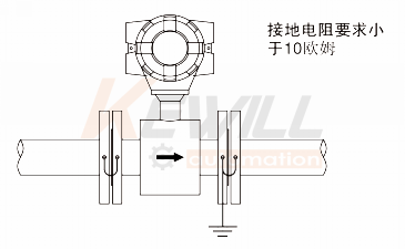 在電磁流量計(jì)傳感器于被測(cè)介質(zhì)之間必須有一個(gè)可靠的接地路徑。接地的方式可以選擇接地電極,接地環(huán)和管道接地等三種方式。詳見(jiàn)選型表。