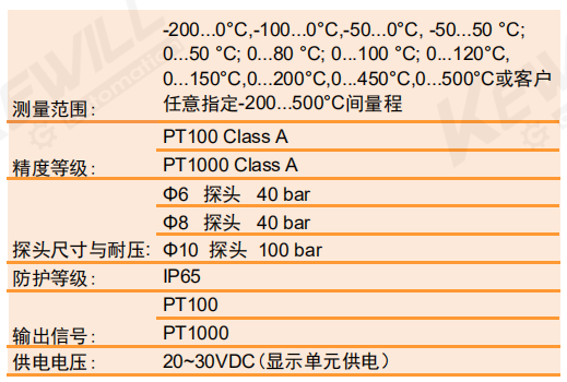 | /ND | -50…50 °C; | /PD | 0…100 °C; | /PH | 0…300°C; | /PL | 任意指定量程 | ||||||||||||