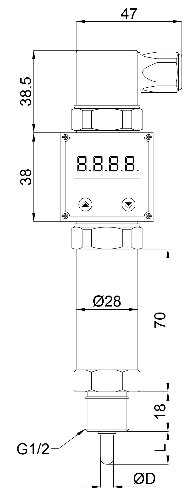| 0…100 °C | 0mm | 0…500 °C | 300mm |