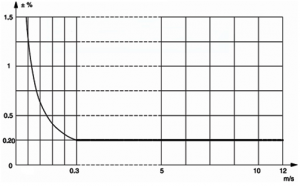 電磁流量計系統的準確性曲線圖(±0.20%)