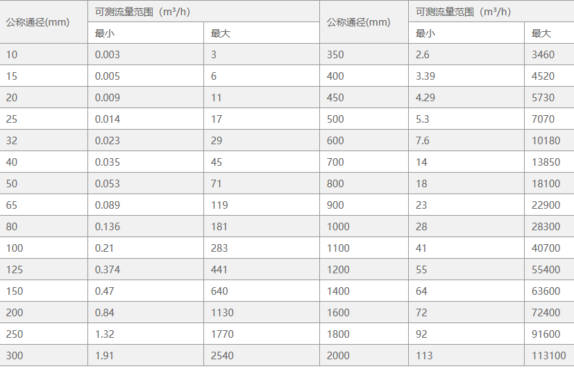 ●從經(jīng)濟性考慮,可以選擇適當(dāng)流速所對應(yīng)的口徑的電磁流量計,相對減少投資(見流量范圍表);