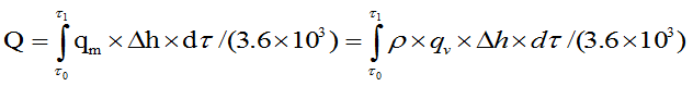 式中: Q-系統釋放或吸收的熱量,單位為KWh; qm-流經熱量表的水的質量流量,單位為kg/h; qv-流經熱量表的水的體積流量,單位為m3/h; ρ-流經熱量表的水的密度,單位為kg/m3; △h-在熱交換系統進口和出口溫度下水的焓值差。單位為kJ/kg; τ-時間,單位為h.